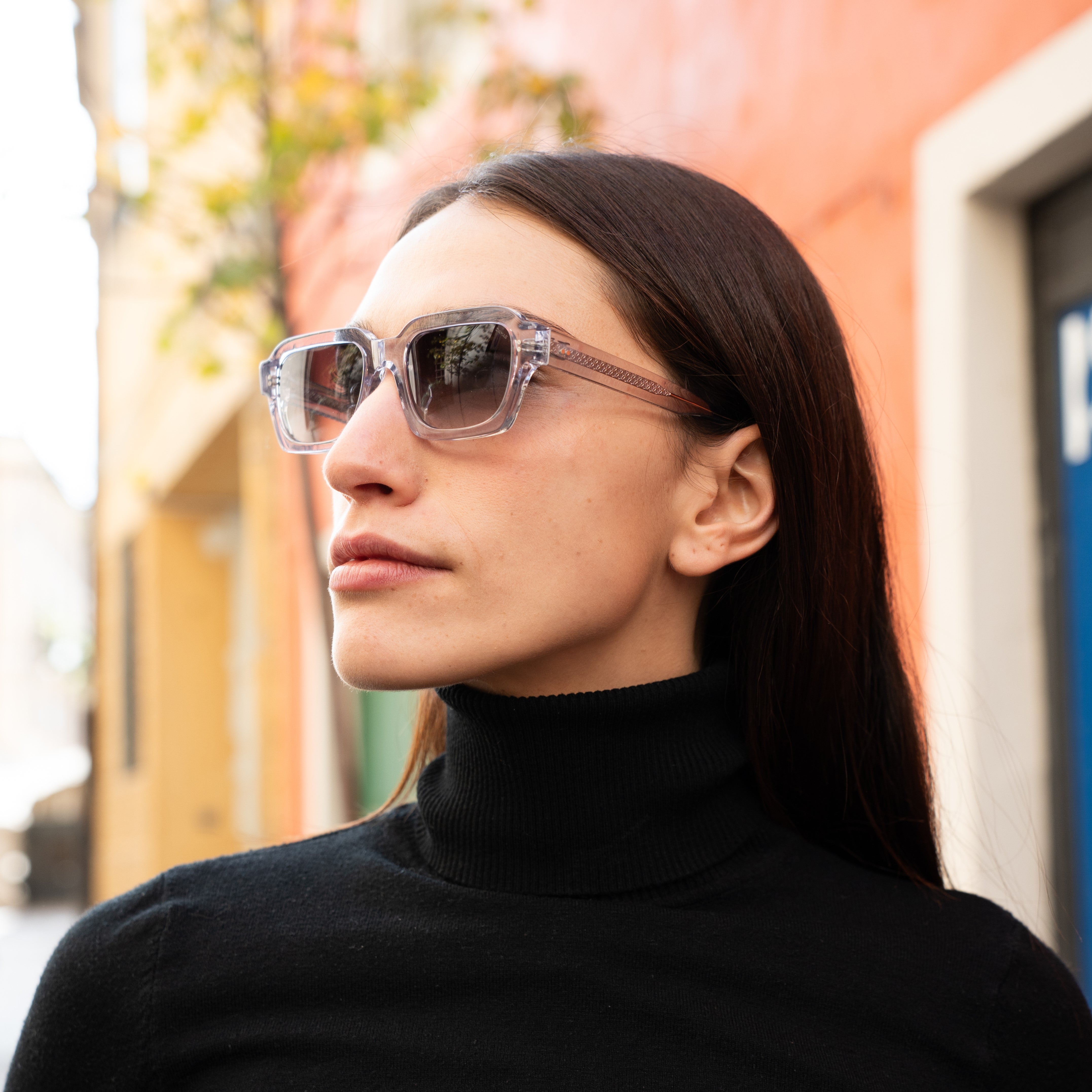 هذه النظارات الشمسية الهندسية مصممة من أسيتات مازوتشيلي الشفاف، مع أذرع متناسقة وعدسات رمادية متدرجة. يُعزز الإطار الشفاف شكلها المنحوت، ويمنحها إحساسًا راقيًا بالسطوع والخفّة. أنيقة ومتعددة الاستخدامات، تضفي لمسة عصرية ومنعشة على أي إطلالة، مع الحفاظ على الحرفية الإيطالية المميزة للمجموعة.