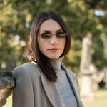 تجمع هذه النظارات الشمسية البيضاوية بدون إطار بين الفولاذ المقاوم للصدأ بلون الأنثراسيت وأذرع متناسقة وعدسات خضراء متدرجة. يضفي التباين بين المعدن الداكن والدرجات المضيئة لمسةً عصريةً أنيقة. صُنعت في إيطاليا بدقة متناهية، لتمنحك تعبيرًا راقيًا عن الأناقة. متعددة الاستخدامات، خفيفة الوزن، وعصرية بامتياز.