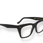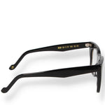 This cat-eye optical frame is crafted in black Mazzucchelli acetate with matching temples and transparent lenses. The sculpted angles enhance the eyes with a lifted, confident silhouette, combining classic femininity with modern strength. Handcrafted in Italy, it offers impeccable balance, lightweight comfort, and enduring style, a true icon of refined elegance.