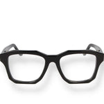 This geometric optical frame is crafted in premium black Mazzucchelli acetate with matching temples and transparent lenses. The bold shape and clean structure reflect a perfect mix of confidence and minimalism. Designed to suit every face with effortless style, it delivers comfort, durability, and Italian precision, a contemporary essential with character.