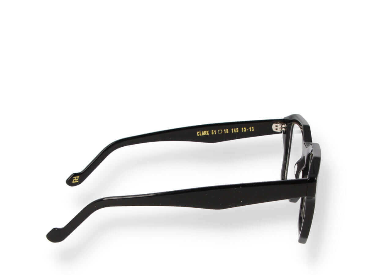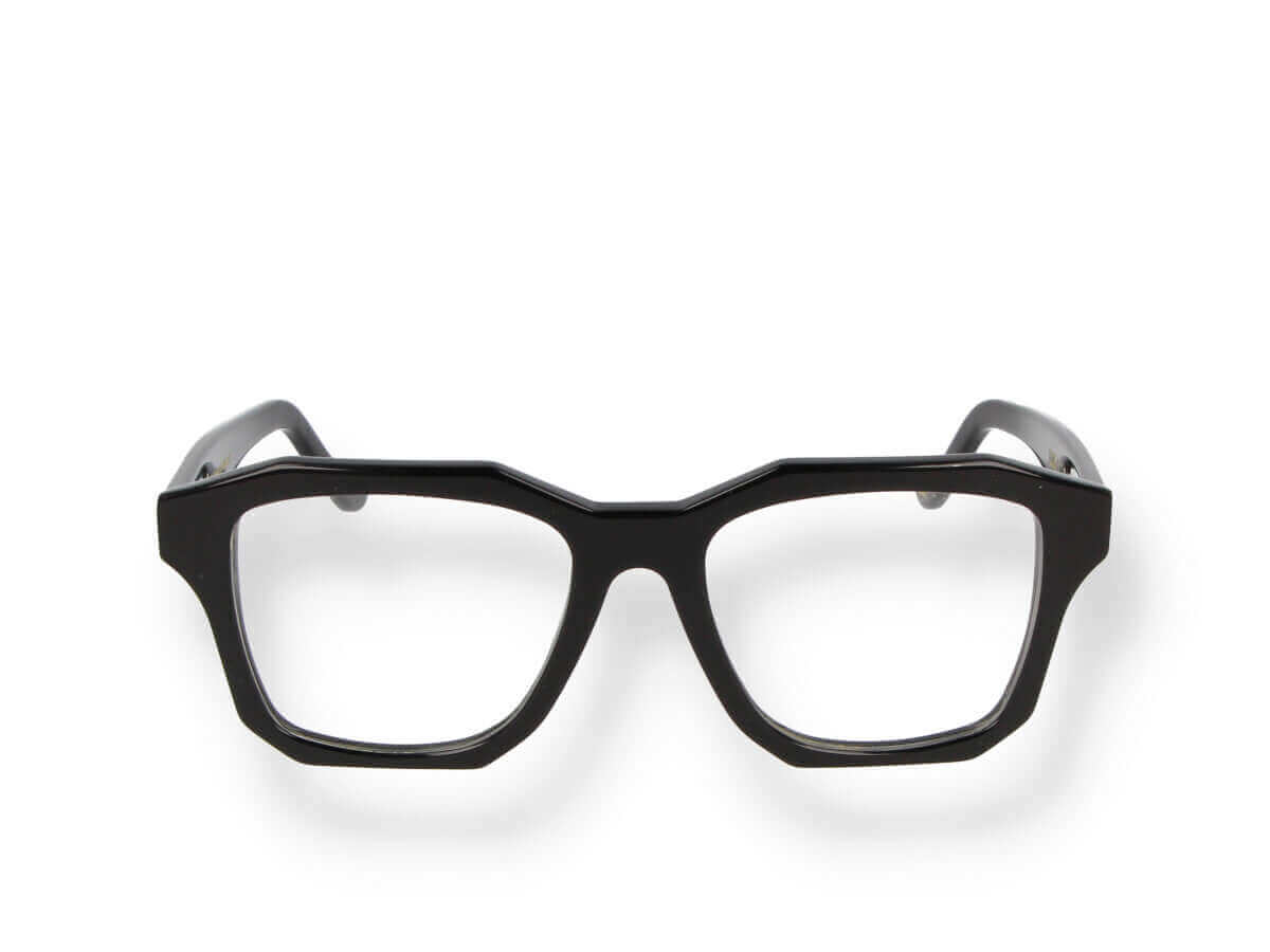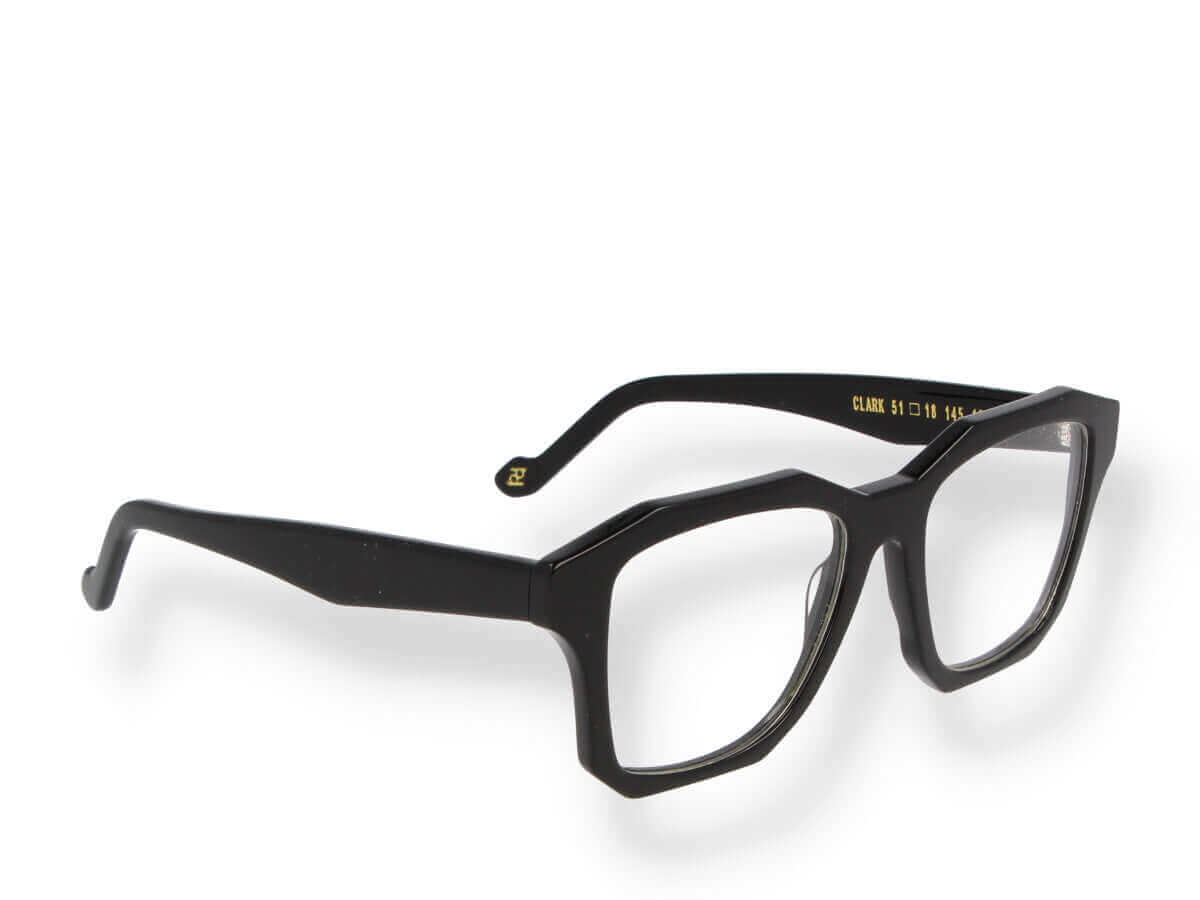 CLARK 13 13 geometric optical frame with black Mazzucchelli acetate temples and transparent lenses. Strong lines and timeless simplicity for a modern unisex look.
