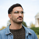 This rectangular optical frame combines black stainless steel with subtle gold accents, paired with matching temples and transparent lenses. The clean geometry enhances facial definition while preserving a refined, professional look. Lightweight yet durable, it delivers lasting comfort and strength. Entirely made in Italy, it’s a perfect fusion of functionality and understated luxury.