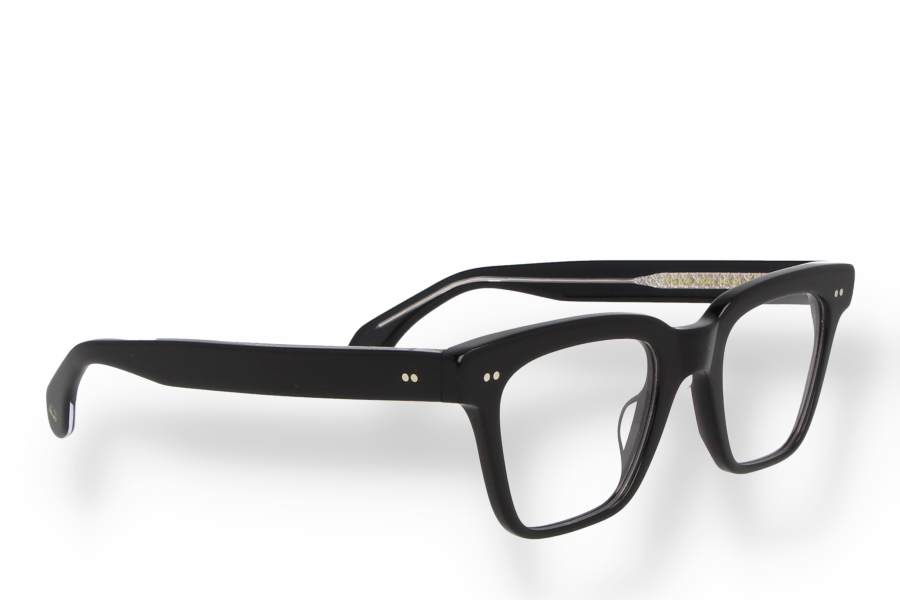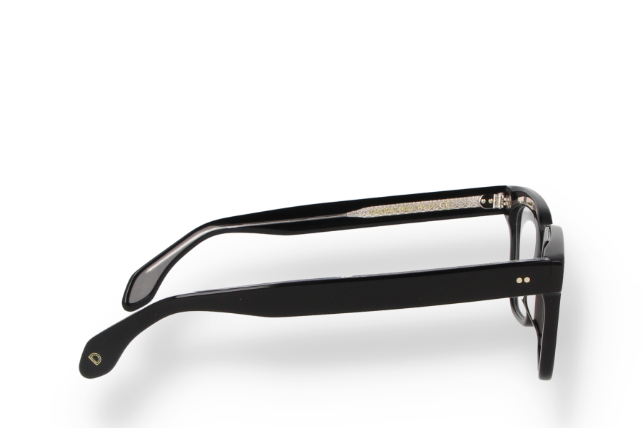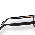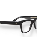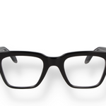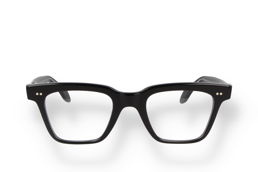 This geometric optical frame is crafted in black Mazzucchelli acetate with matching temples and transparent lenses. The defined lines and solid color emphasize a strong, contemporary character while remaining perfectly balanced and wearable. Entirely made in Italy, it combines durability, comfort and timeless design, ideal for everyday use with a confident attitude.