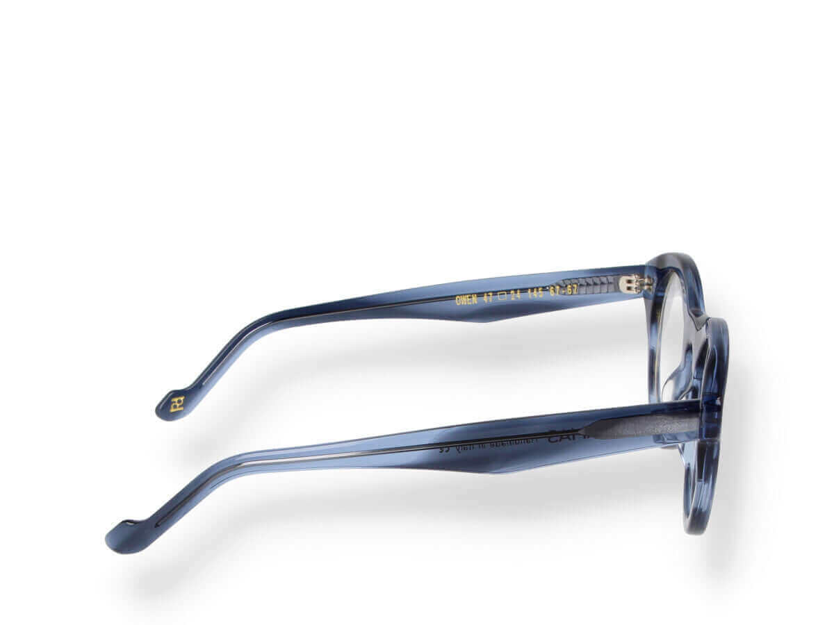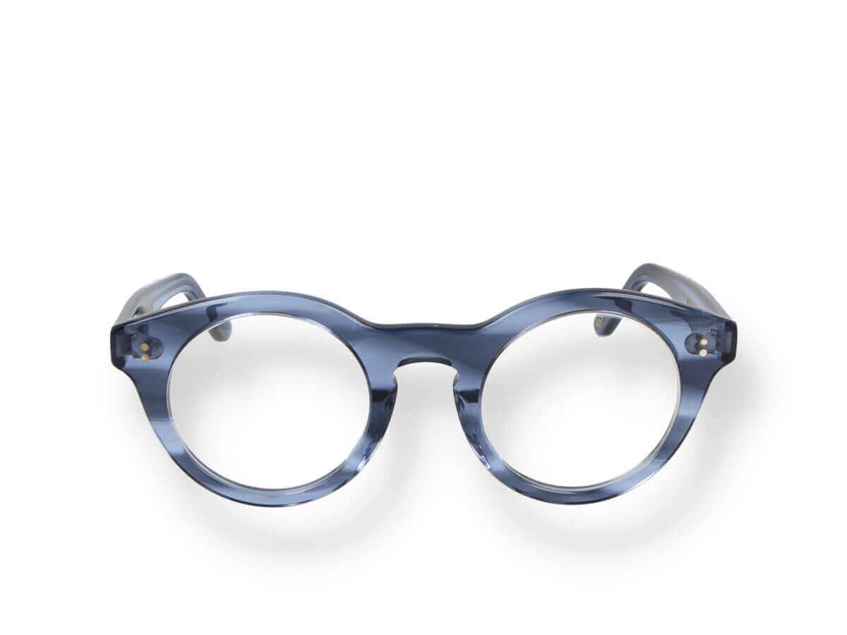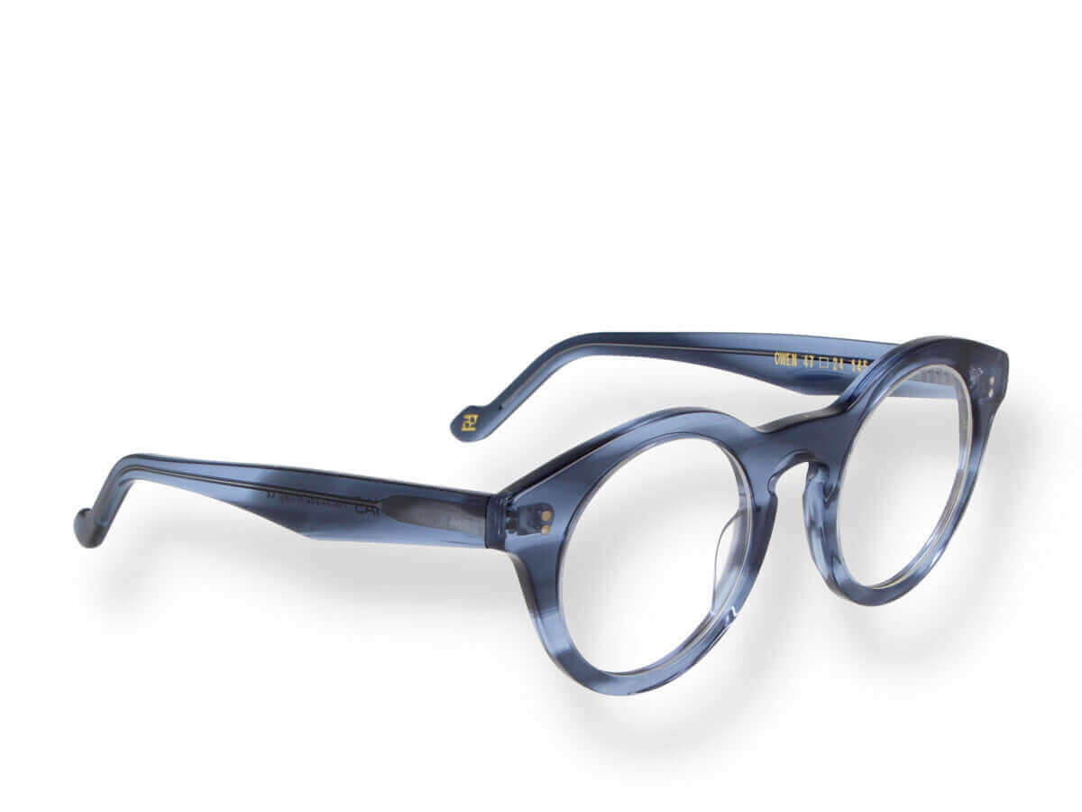 OWEN 67 67 round optical frame with blue Mazzucchelli acetate temples and transparent lenses. A fresh, creative take on a timeless classic.