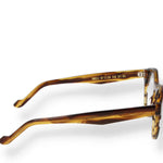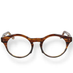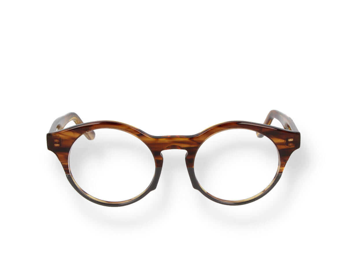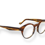 This round optical frame is made of Havana Mazzucchelli acetate with matching temples and transparent lenses. Its bold yet balanced proportions give it a strong visual identity, merging Italian craftsmanship and modern taste. 100% made in Italy, it represents understated style that endures beyond trends.