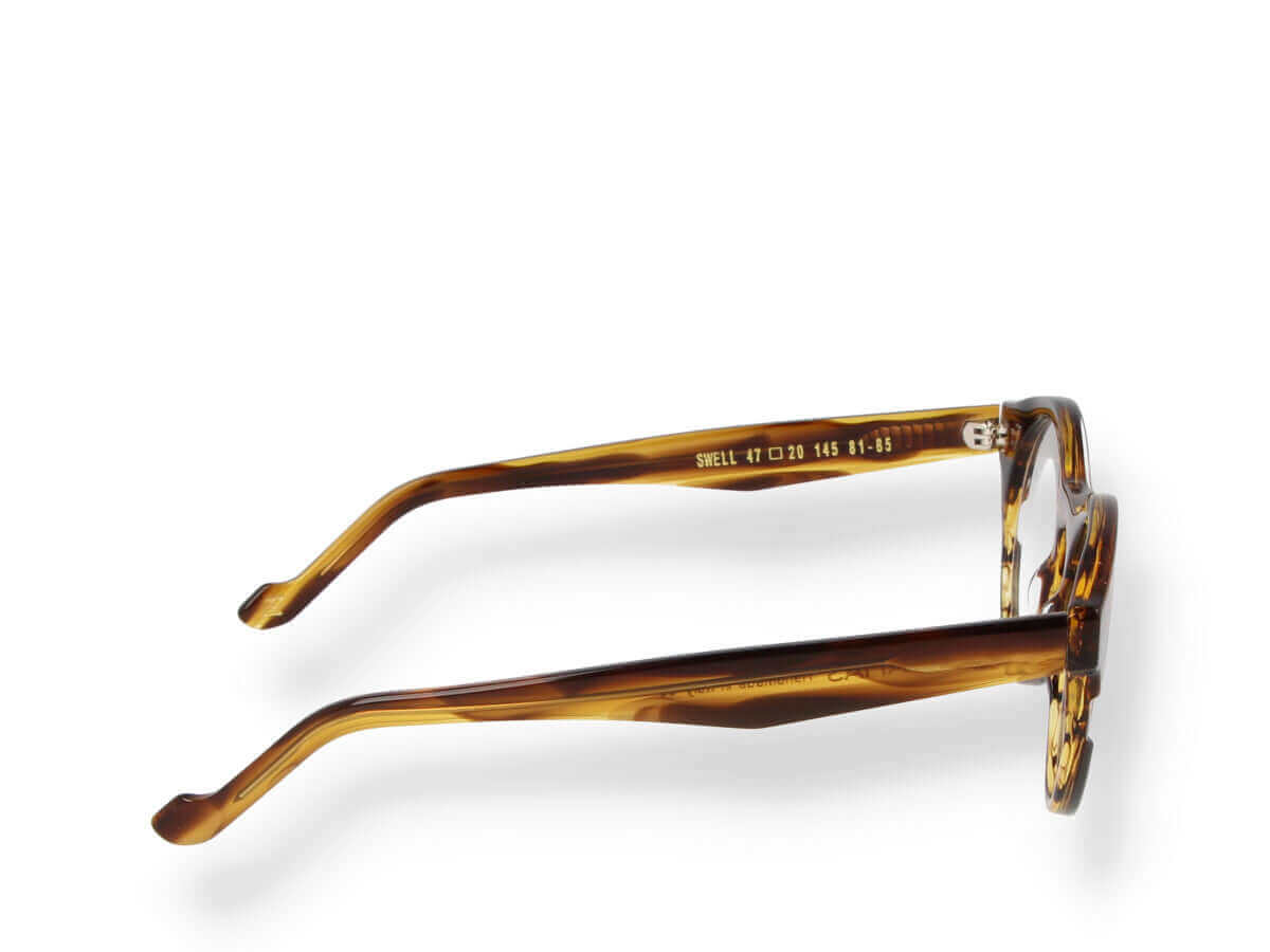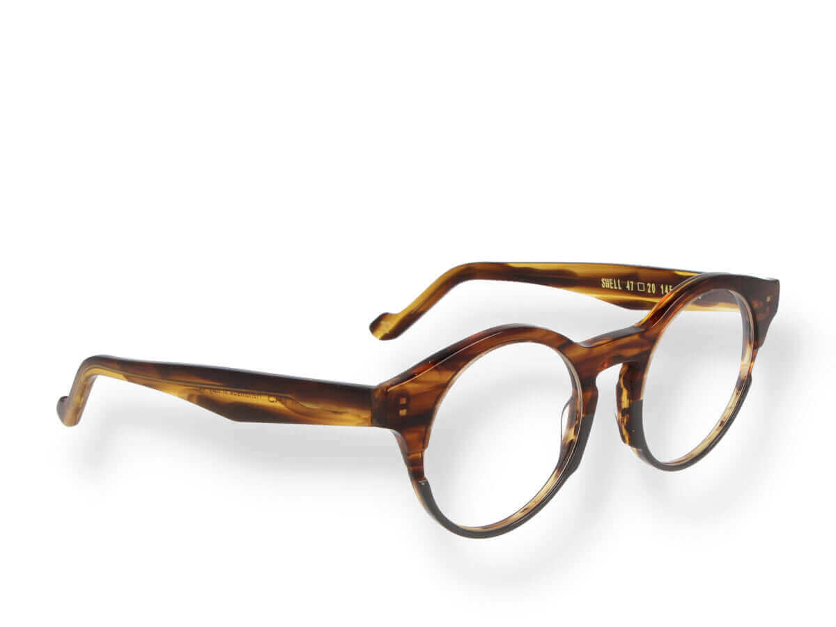 SWELL 81 85 round optical frame with Havana Mazzucchelli acetate temples and transparent lenses, classic and versatile with a contemporary edge.