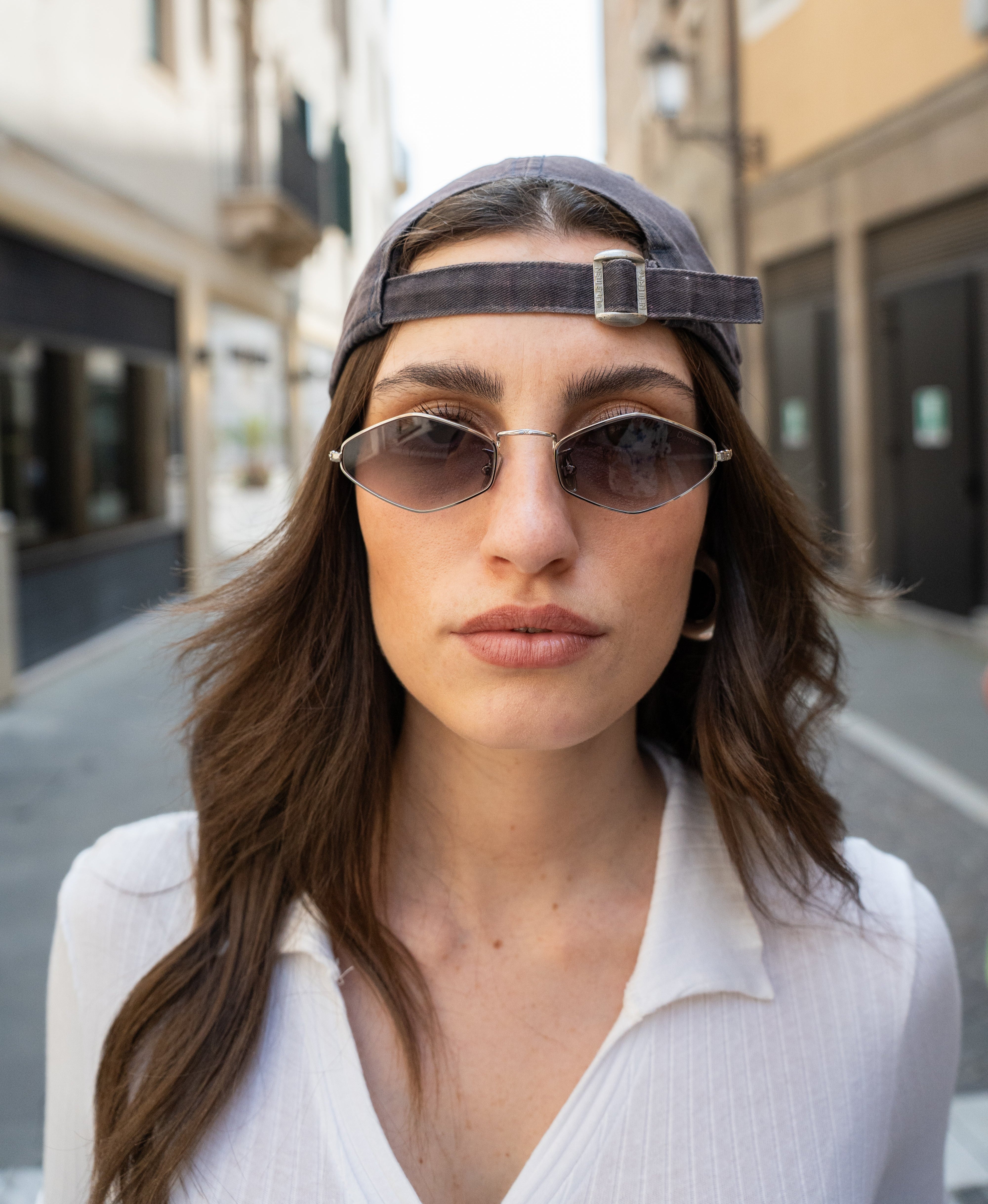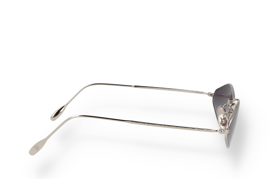 Crafted with a sleek palladium steel frame and grey gradient lenses, this design blends sharp angles with a lightweight feel.
