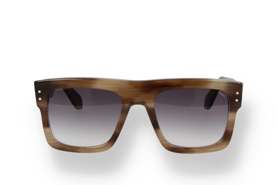 DMS 1007S 03 - Bold square sunglasses with honey Mazzucchelli acetate temples and grey gradient lenses. Warm shades meet bold geometry for an effortlessly distinctive look.
