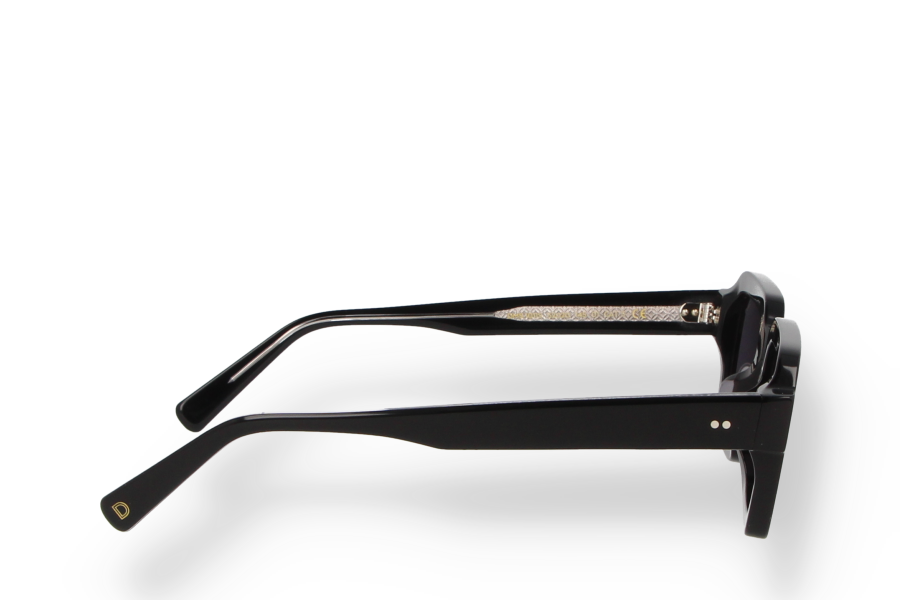 DMS 1011S 01 - Geometric sunglasses with black Mazzucchelli acetate temples and smoke lenses. Sharp lines and deep tones for a bold, timeless look.