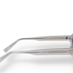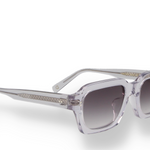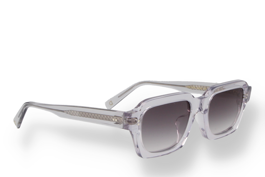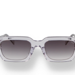 These geometric sunglasses are designed in crystal-clear Mazzucchelli acetate with matching temples and grey gradient lenses. The transparent frame enhances their sculptural shape, giving a refined sense of brightness and lightness. Stylish and versatile, they bring a fresh, contemporary touch to any look while maintaining the signature Italian craftsmanship of the collection.