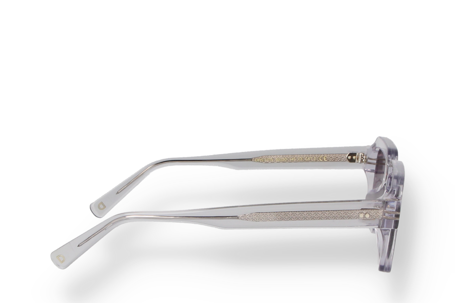 DMS 1011S 03 - Geometric sunglasses with crystal Mazzucchelli acetate temples and grey gradient lenses. Light, luminous, and effortlessly chic.