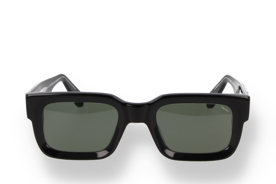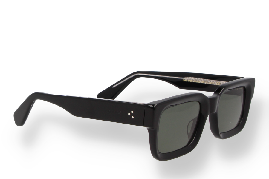 DMS 1013S 01 - Rectangular sunglasses with black Mazzucchelli acetate temples and green lenses. A strong, versatile frame that balances structure and sophistication.