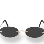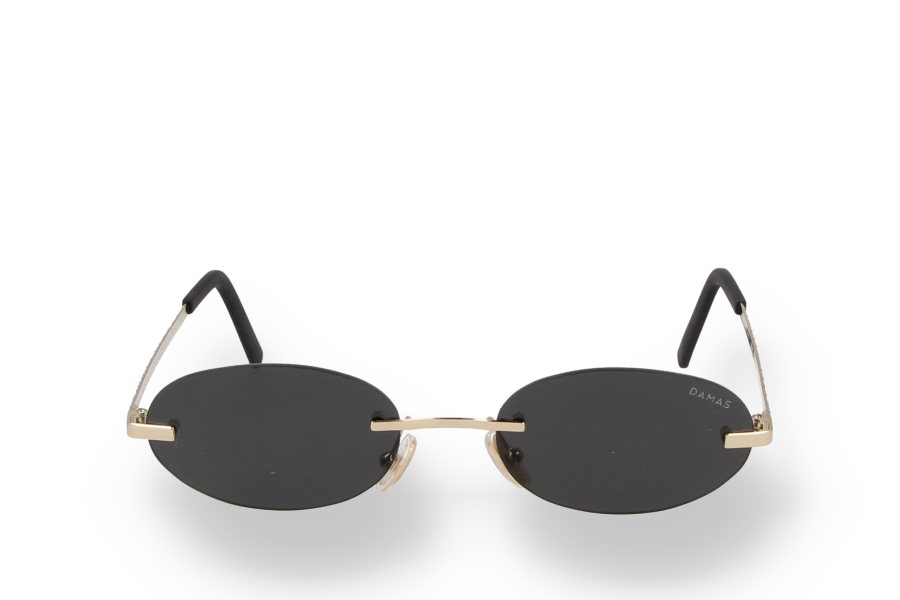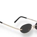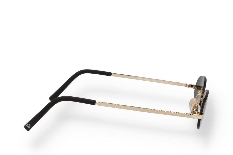 DMS 1016S 02 - Oval rimless sunglasses with light gold stainless steel temples and dark grey lenses. Modern balance between purity and strength.