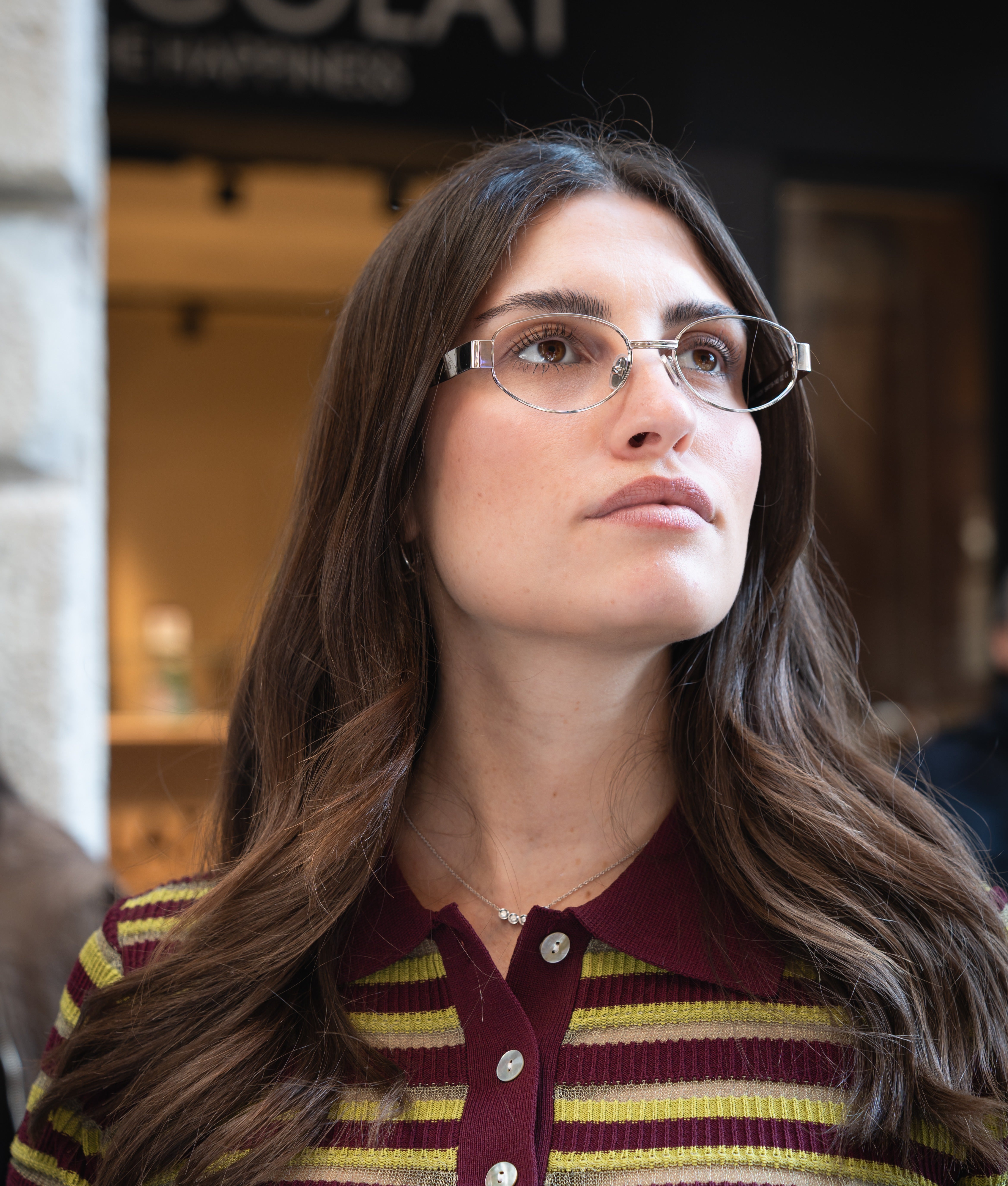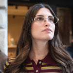 Questa montatura da vista ovale è realizzata in acciaio inossidabile argento lucido con aste coordinate e lenti trasparenti. Le proporzioni delicate e la luminosità metallica trasmettono una discreta sicurezza e versatilità. Progettata e realizzata in Italia, unisce comfort e leggerezza a uno spirito elegante e contemporaneo, ideale per la raffinatezza quotidiana.