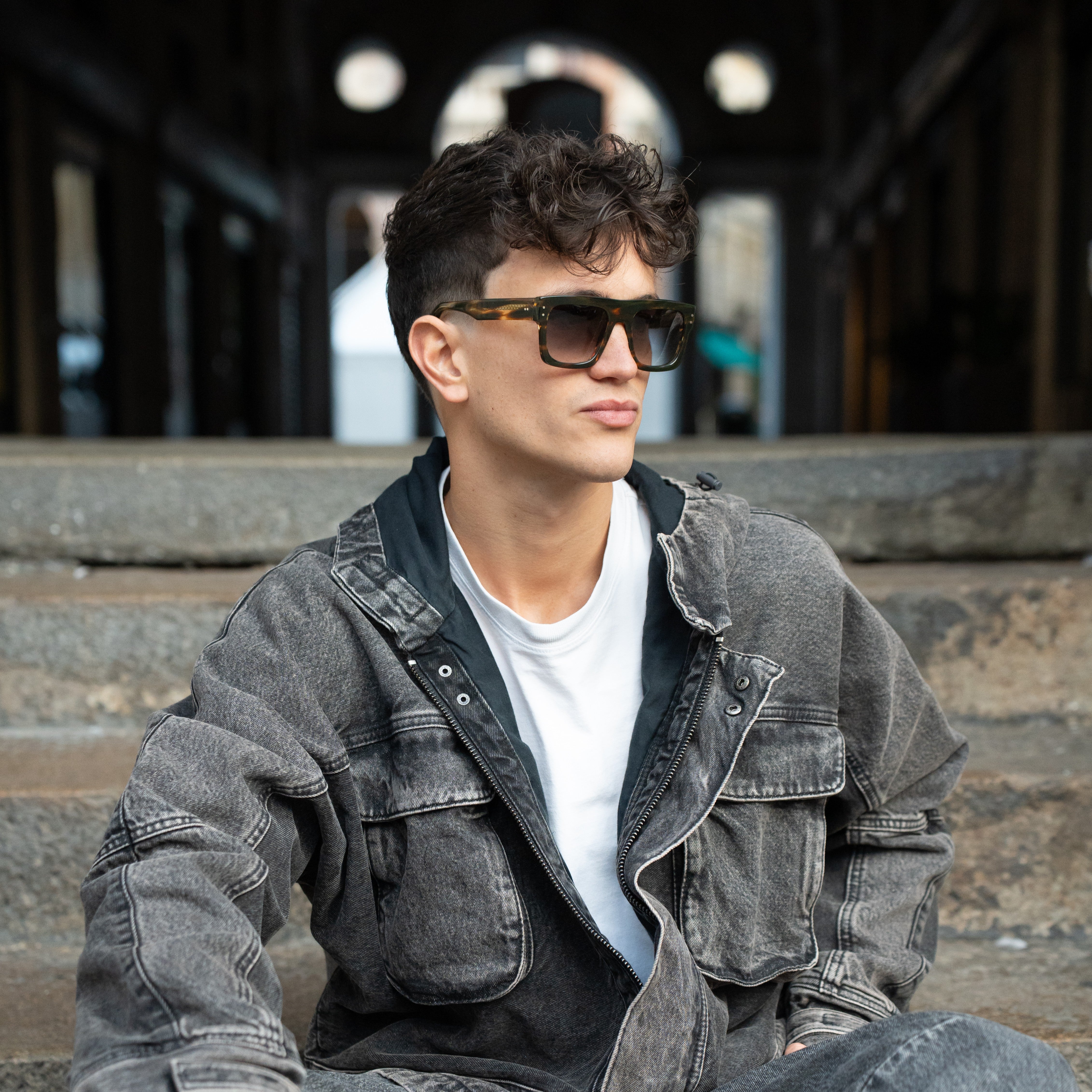 DMS 1007S 02 - Occhiali da sole squadrati e audaci con aste in acetato Mazzucchelli havana e lenti sfumate grigie. Un mix senza tempo di toni classici e design contemporaneo.
