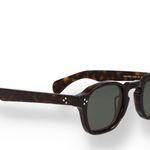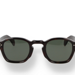 These round sunglasses are crafted in dark havana Mazzucchelli acetate with matching temples and green lenses for a natural, earthy tone. The rounded frame softens the look while maintaining a masculine edge, offering an ideal mix of heritage and modernity. Expertly made in Italy, they deliver effortless style and everyday comfort with a sophisticated finish.